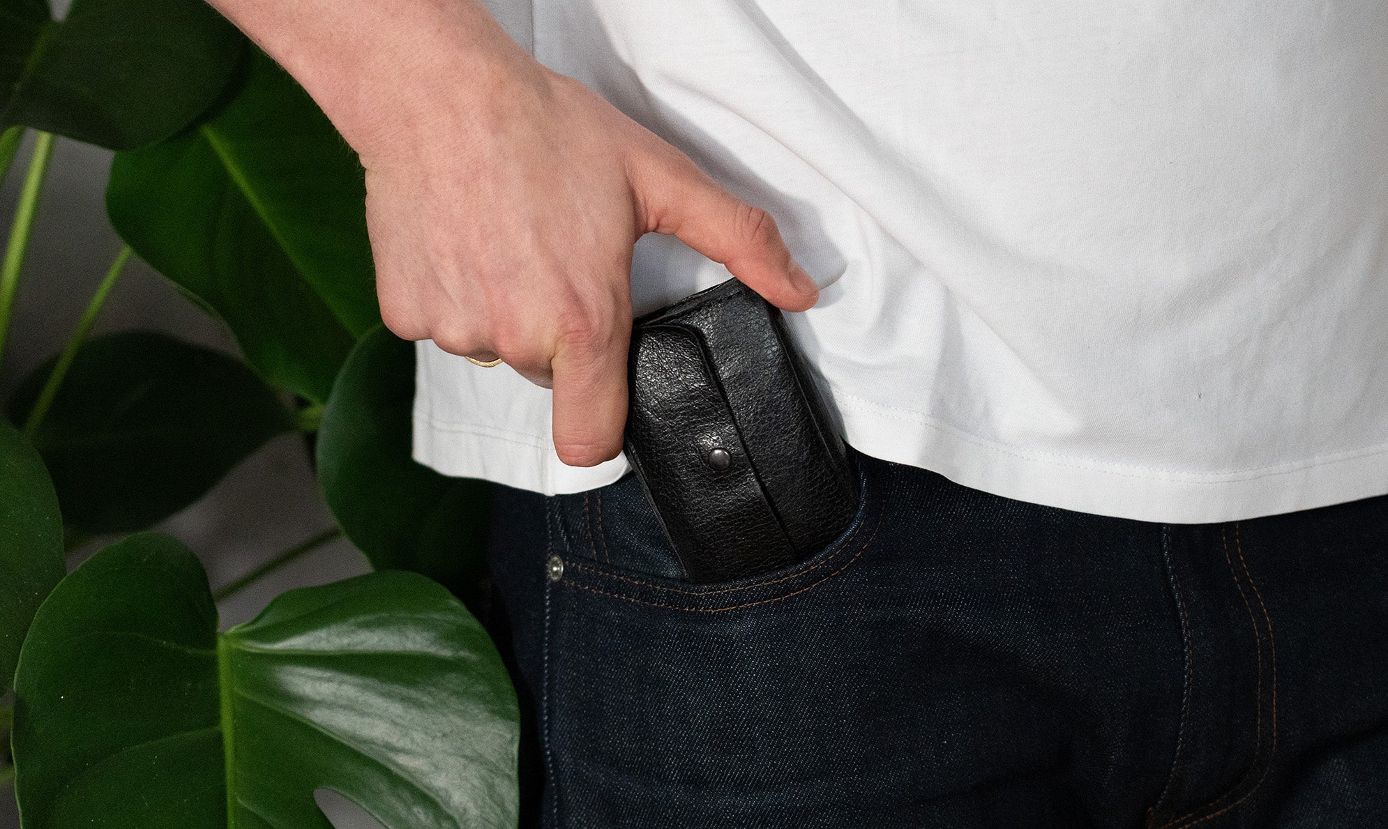Hat genau die richtige Größe, um seine wichtigsten Karten, Geldscheine und einige Münzen zu transportieren und dennoch noch in jede Hosentasche zu passen!